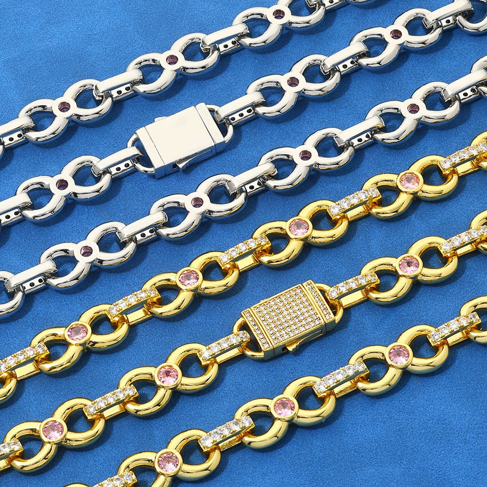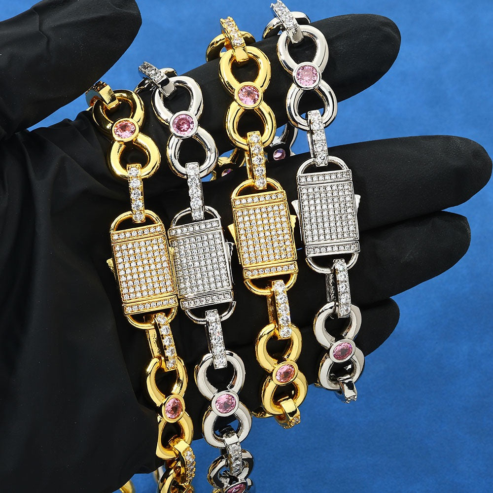 12mm Pink Daimonds With Infinity Cuban Bracelet