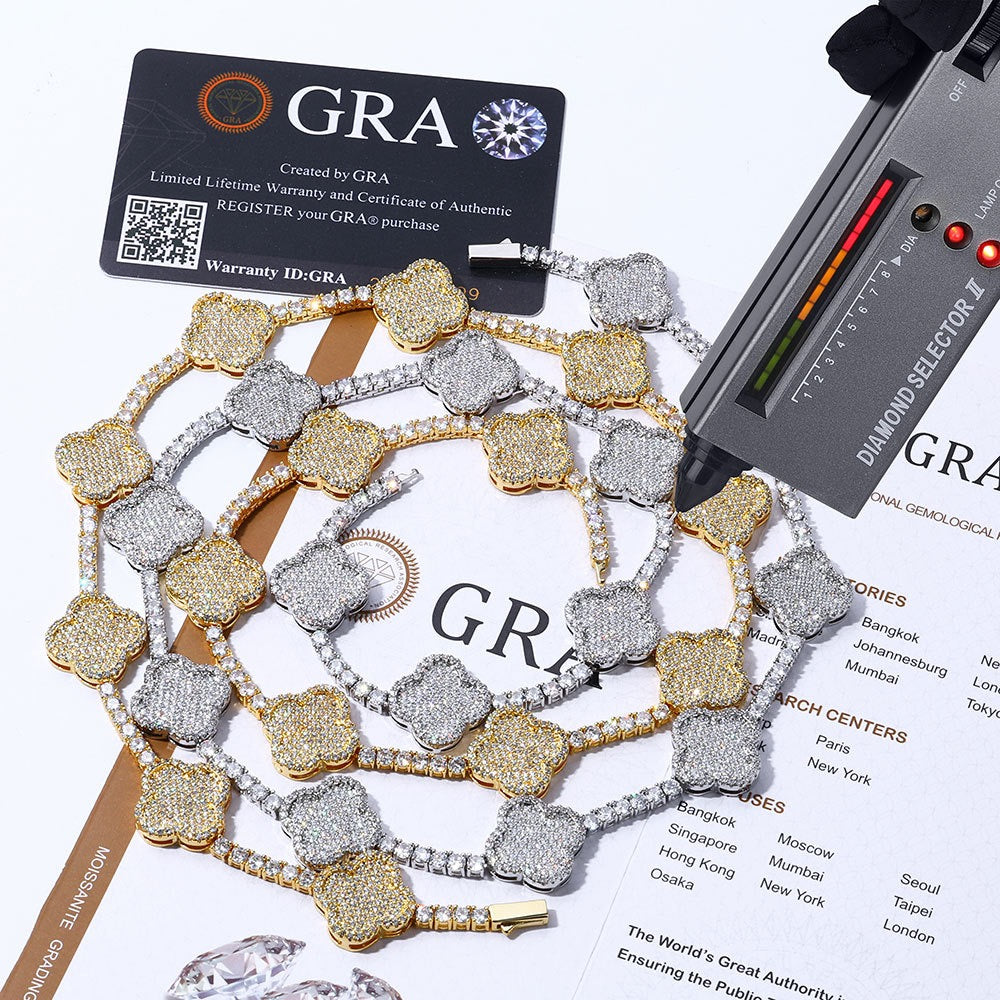 3.5mm S925 & Moissanite Four-Leaf Clover Cuban Chain