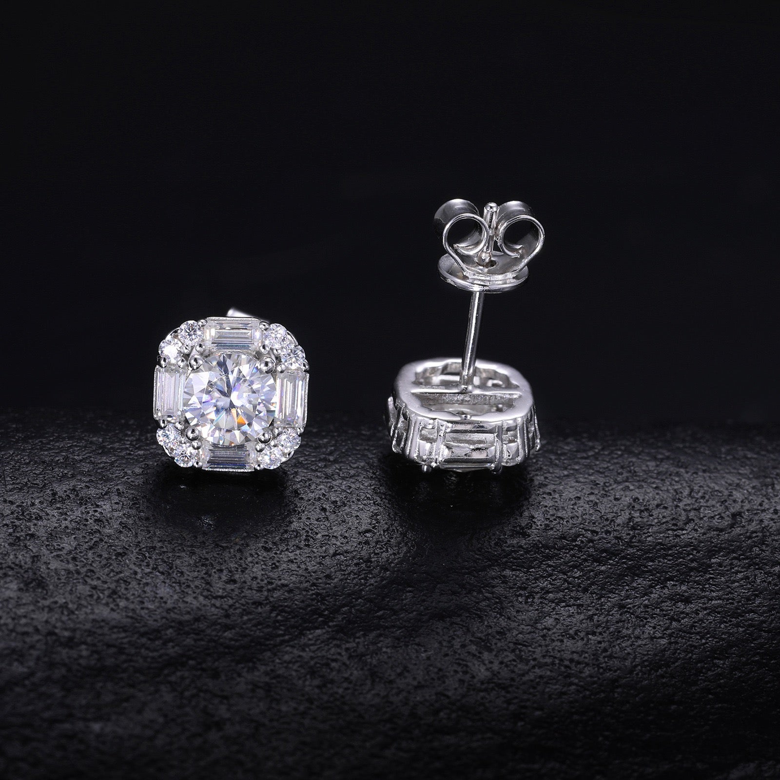925S & Moissanite Baguette & Round Earrings