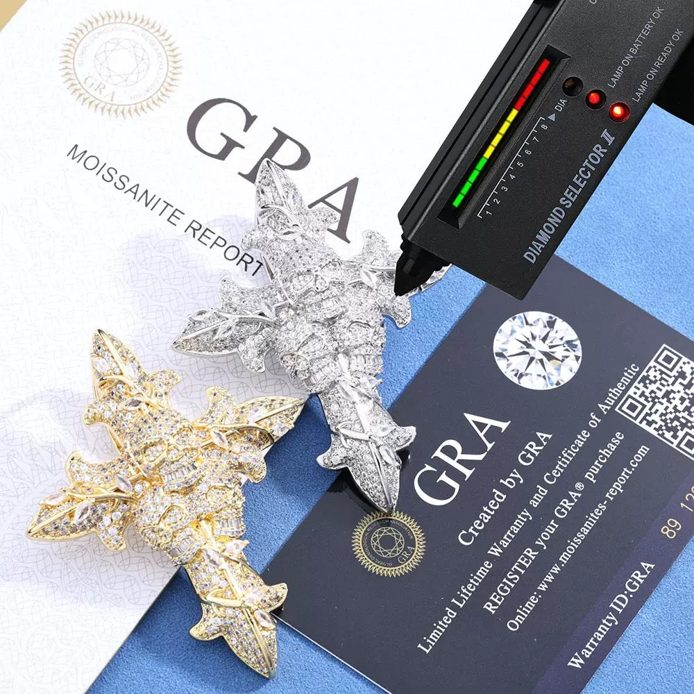 925S & Moissanite Cross With Skeleton Pendant
